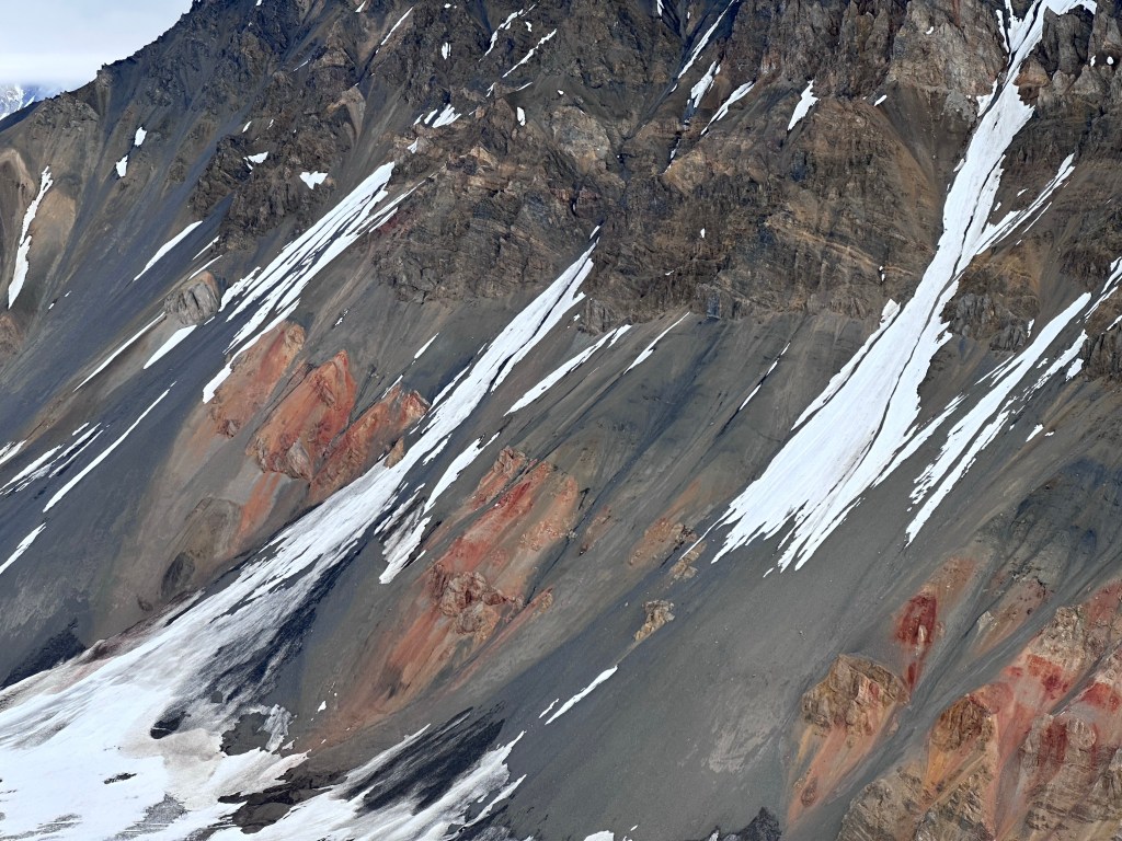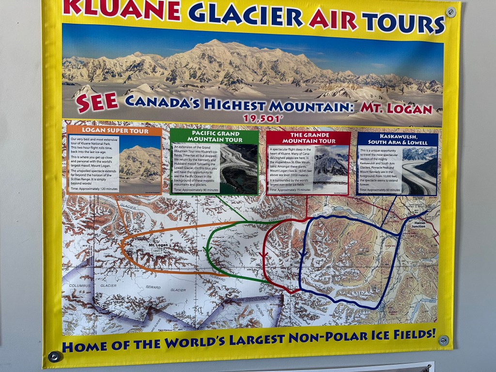 Here just a few photos from the flight. The pilot knew a lot of history. For example, twenty British explorers set out to explore the ice fields early on. Porters carried wireframe beds for the leaders. What the expedition did not know is that the ice field is the largest outside the polar regions. And that Mount Logan here is the highest mountain in Canada, and after Denali the second highest in North America.