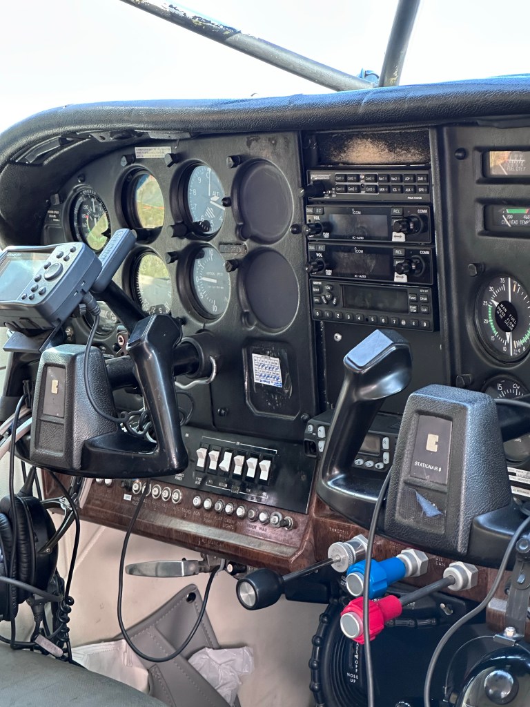 The day before the flight I visited the airport on the Motel’s eBike, just for fun. Before entering the office to seek out Stu, I snuck a photo of the parked plane through an open door in the fence. I was prepared for being challenged as a terrorist.