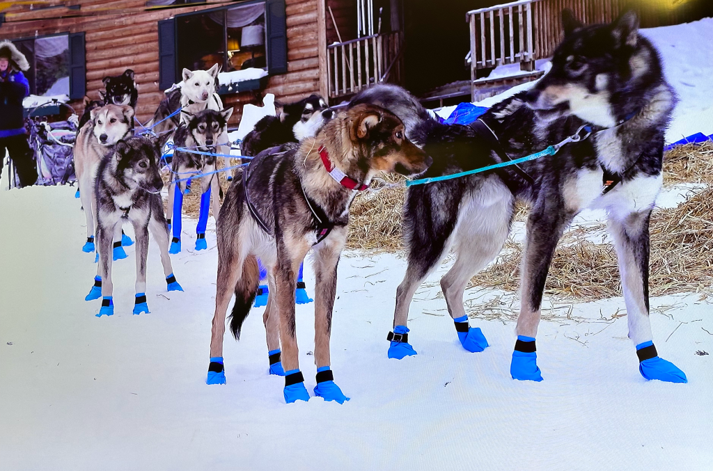 The booties protect the paws. Some dogs hate them, others get excited when you put them on. Mushers train year around. In summer they use wheeled ‚sleds. ‘ The job is expensive, as you need to feed all these dogs, and pay vet bills. Prize money is nominal, at least for the qualifying races.
