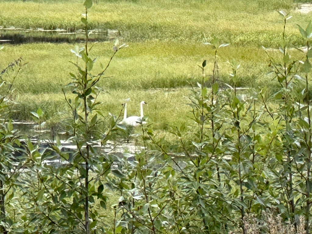 I finally saw these mythical trumpeter swans (photo 5). They are six feet long, and reach wingspans up up to 10 feet. Many nature related plaques mentioned them.