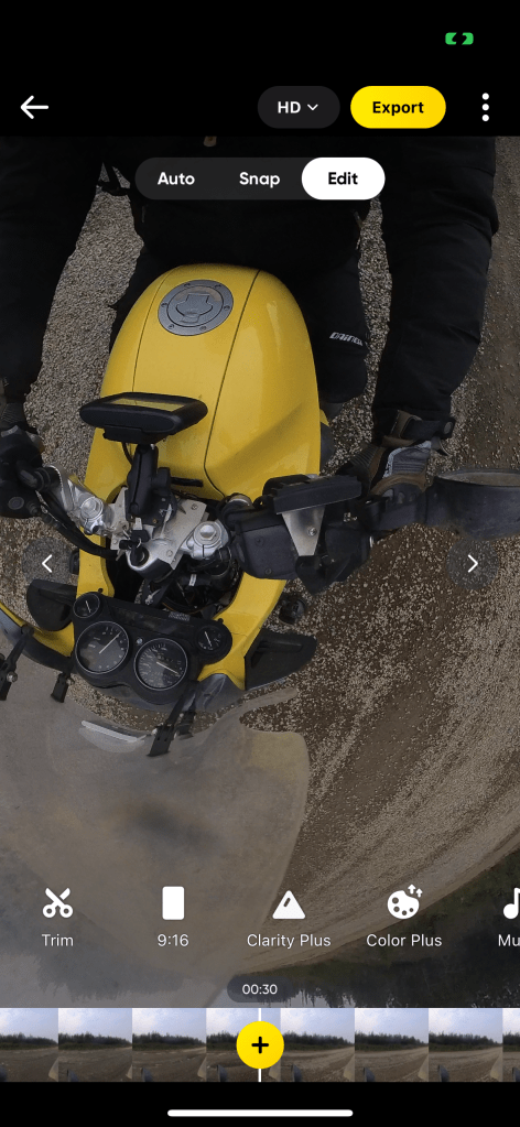 If you never edited GoPro, or Insta360 footage, here a tiny explanation of how it works. Just skip to the two video examples in the next section if video editing doesn’t float your boat. Summary: it’s like regular video editing, but with all directions available at all times.