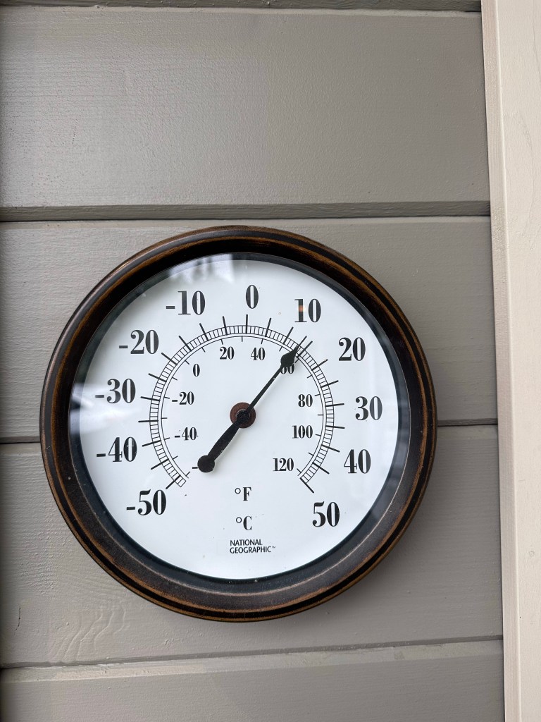 Not all bad, though! Interesting scenery along the road when rain eased (center image). On the right: “That’s a thermometer!”