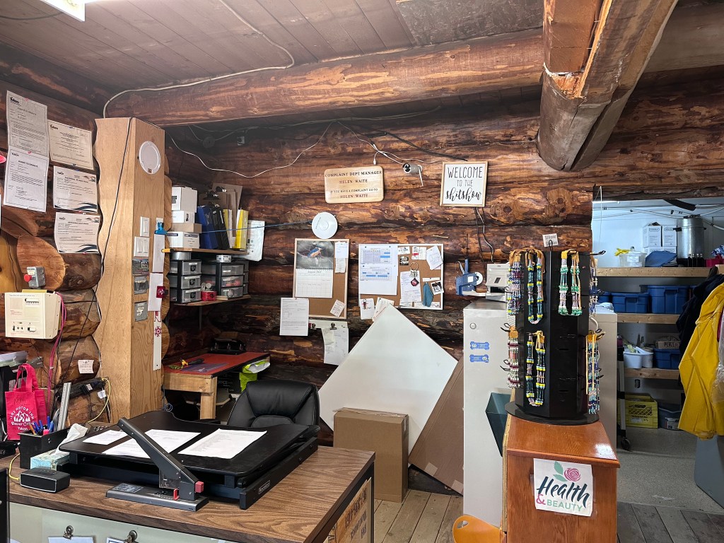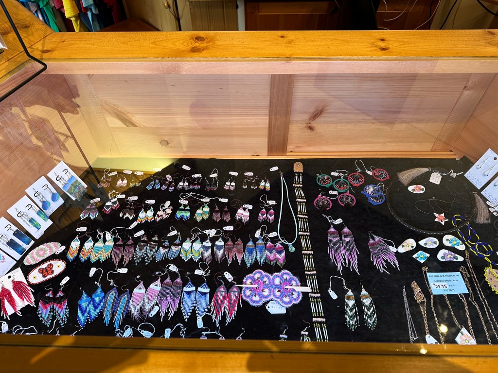 A bit further still, I found a cultural museum along the road. Inside, a taxidermy exhibit of local animals, and artwork by hyper local First Nation members. ‘Hyper,’ as in ‘the back room,’